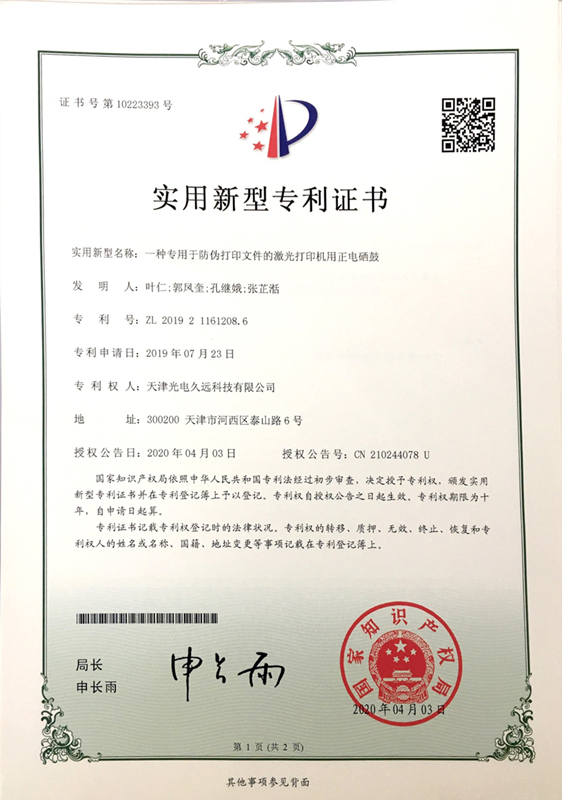 • 一種專用于防偽打印文件的激光打印機用正電硒鼓-實用